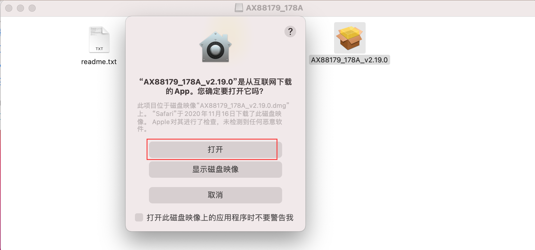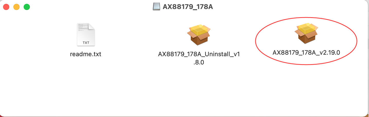 3、找到下载的文件,双击打开AX88179_178A_v2.19.0.dmg
