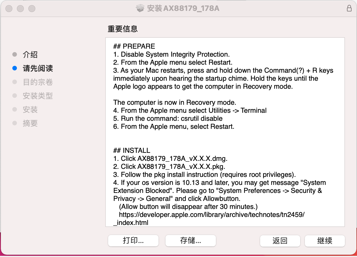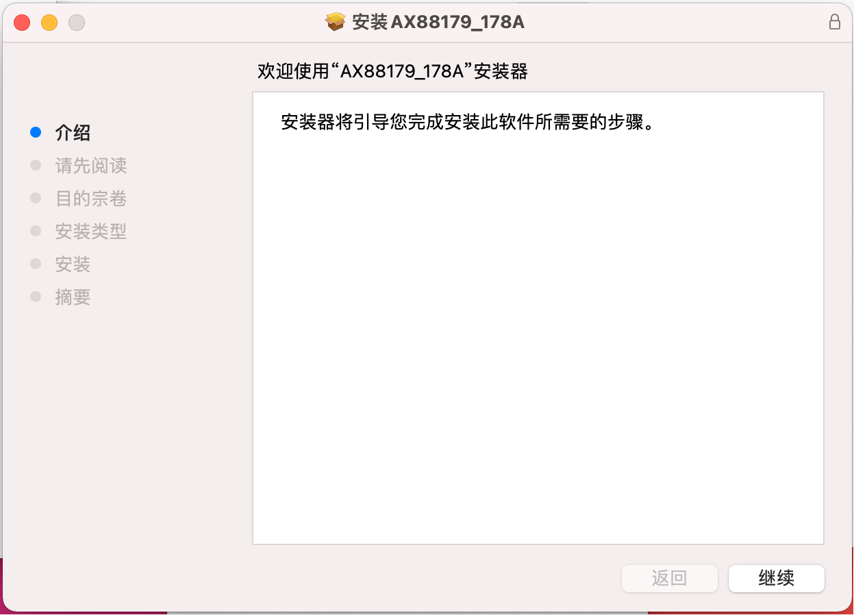 驱动的安装包中,亚信有提供“AX88179_178A_macOS_Driver_Quick_Installation_Guide_v101.pdf”,在官方微信公众号上,也有详细的安装视频:https://mp.weixin.qq.com/s/QXJgVwjHFanZ-7DEibKzjg