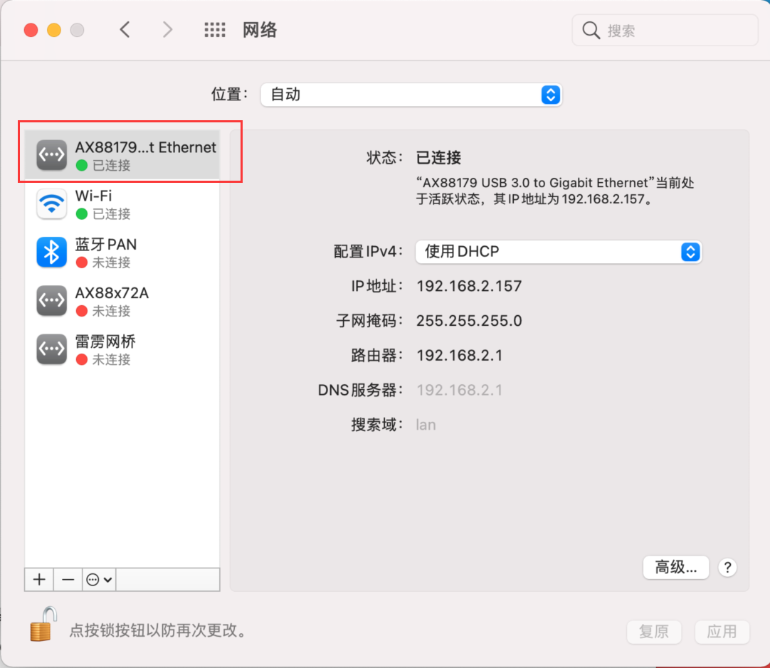 10、找到“系统偏好设置”——“网络”,添加AX88179的网络。OK。大功告成!